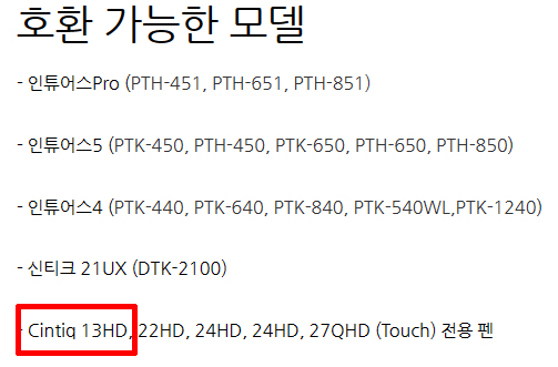 신티크 13hd에 맞춰 그립펜으로 구입했습니다. (프로펜2는 호환이 안됩니다)