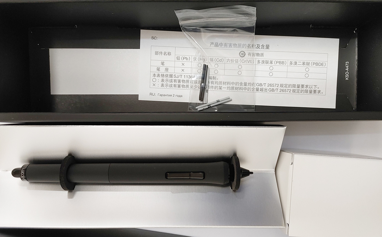 구성은 펜촉 6개와 펜 스탠드, 펜이 들어 있었습니다.